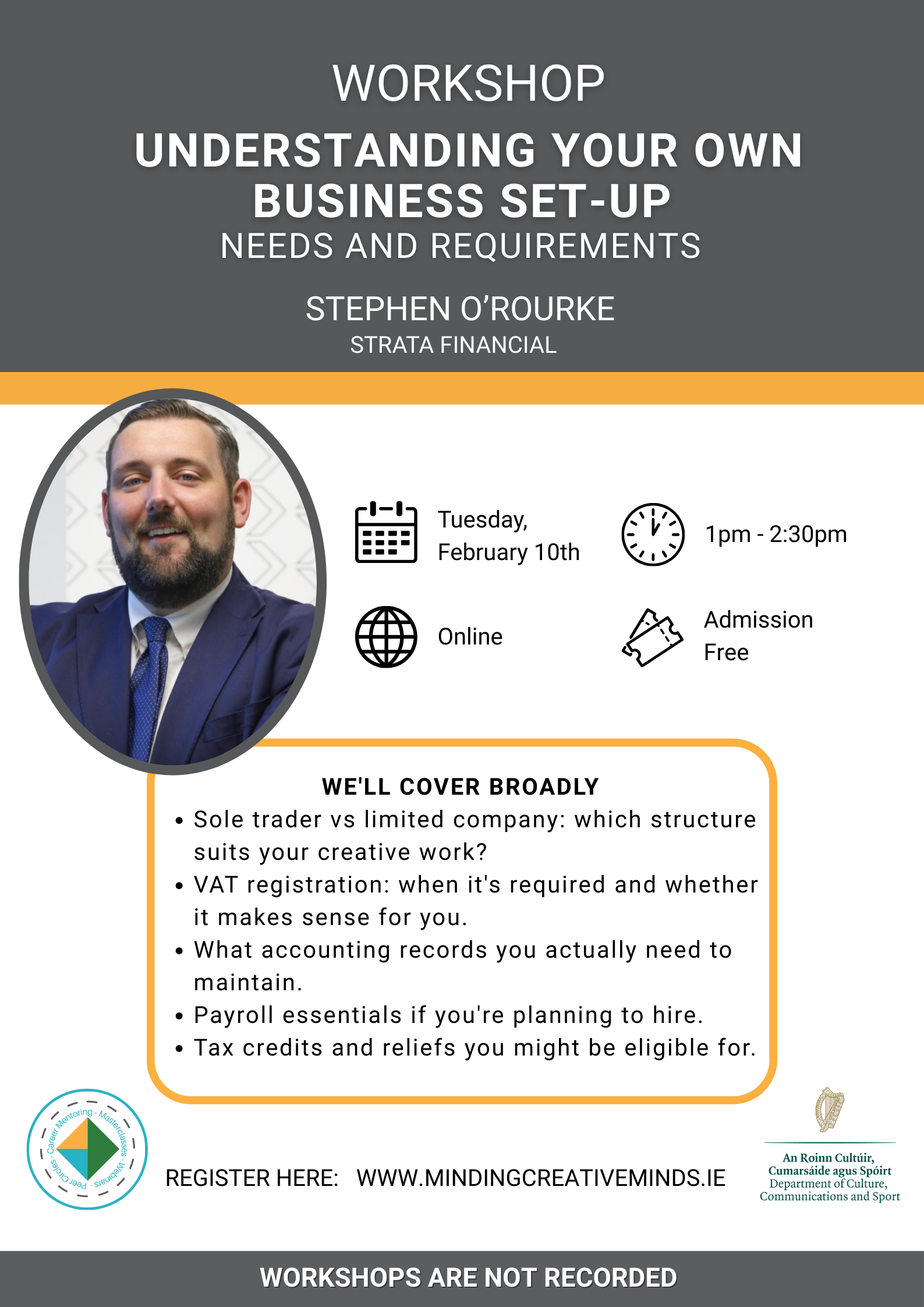 Join us via Zoom for our Workshop with Stephen O’Rourke. This workshop is designed to help you understand your obligations and make confident, informed business decisions.