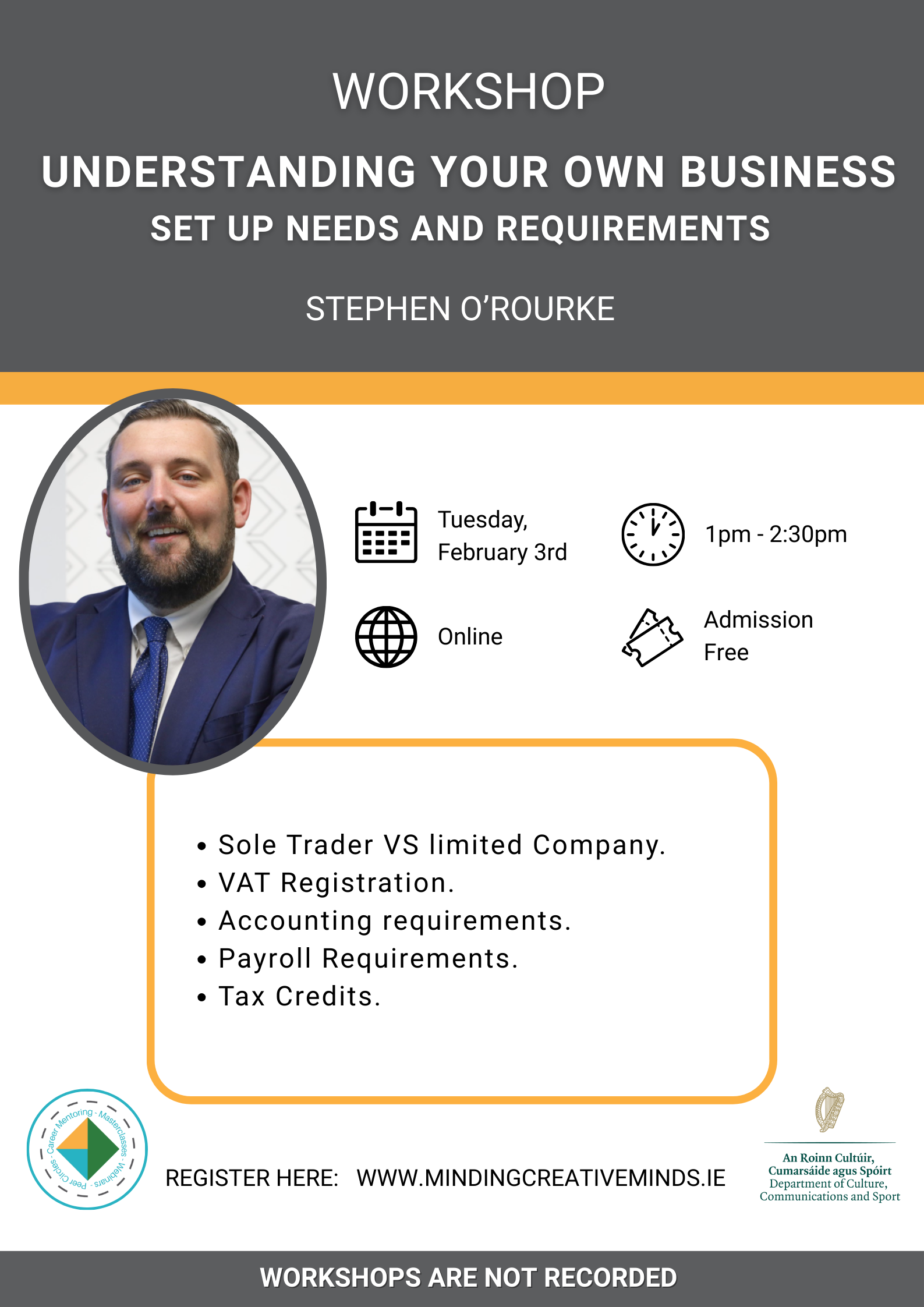 Join us via Zoom for our Workshop with Stephen O’Rourke. This workshop is designed to help you understand your obligations and make confident, informed business decisions.
