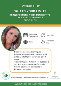 Join us via Zoom for our Workshop with Sue Cullen. Break through mental barriers and unlock your potential. Identify limiting beliefs, transform your mindset, and set meaningful goals to start the year with clarity and confidence.